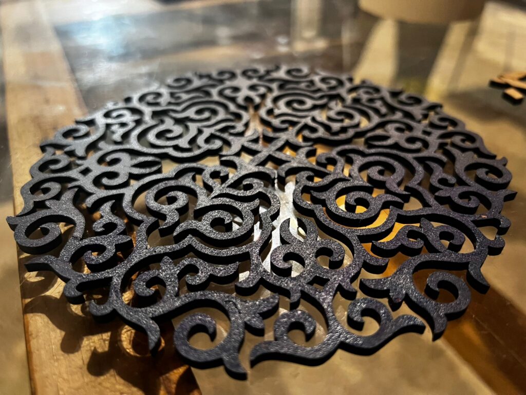 Sellos de Madera: Utilizamos diseños complejos creados con corte láser sobre tinglado, combinando artesanía y precisión tecnológica para diseños de alta complejidad